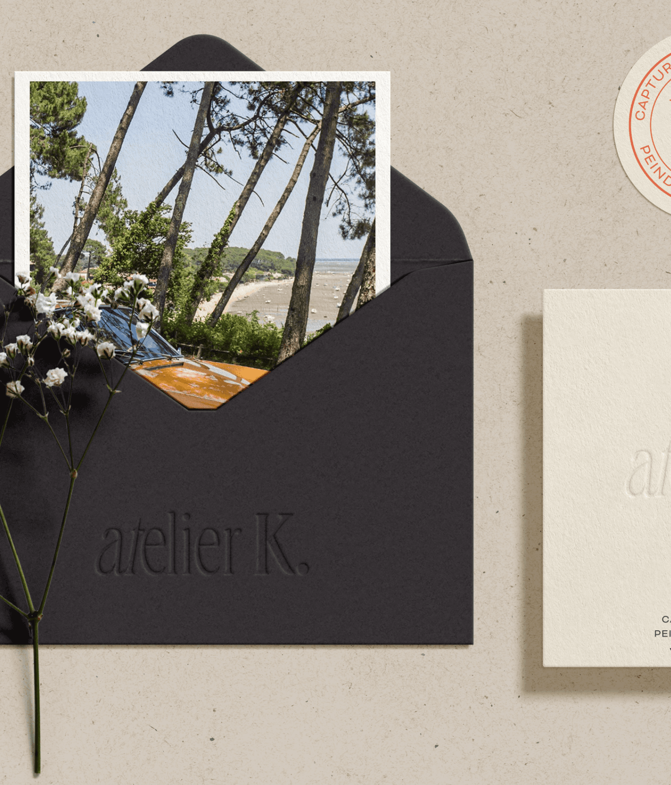 Identité visuelle de l’Atelier K : direction artistique, logotype et système graphique pensés pour traduire une posture artisanale et artistique.