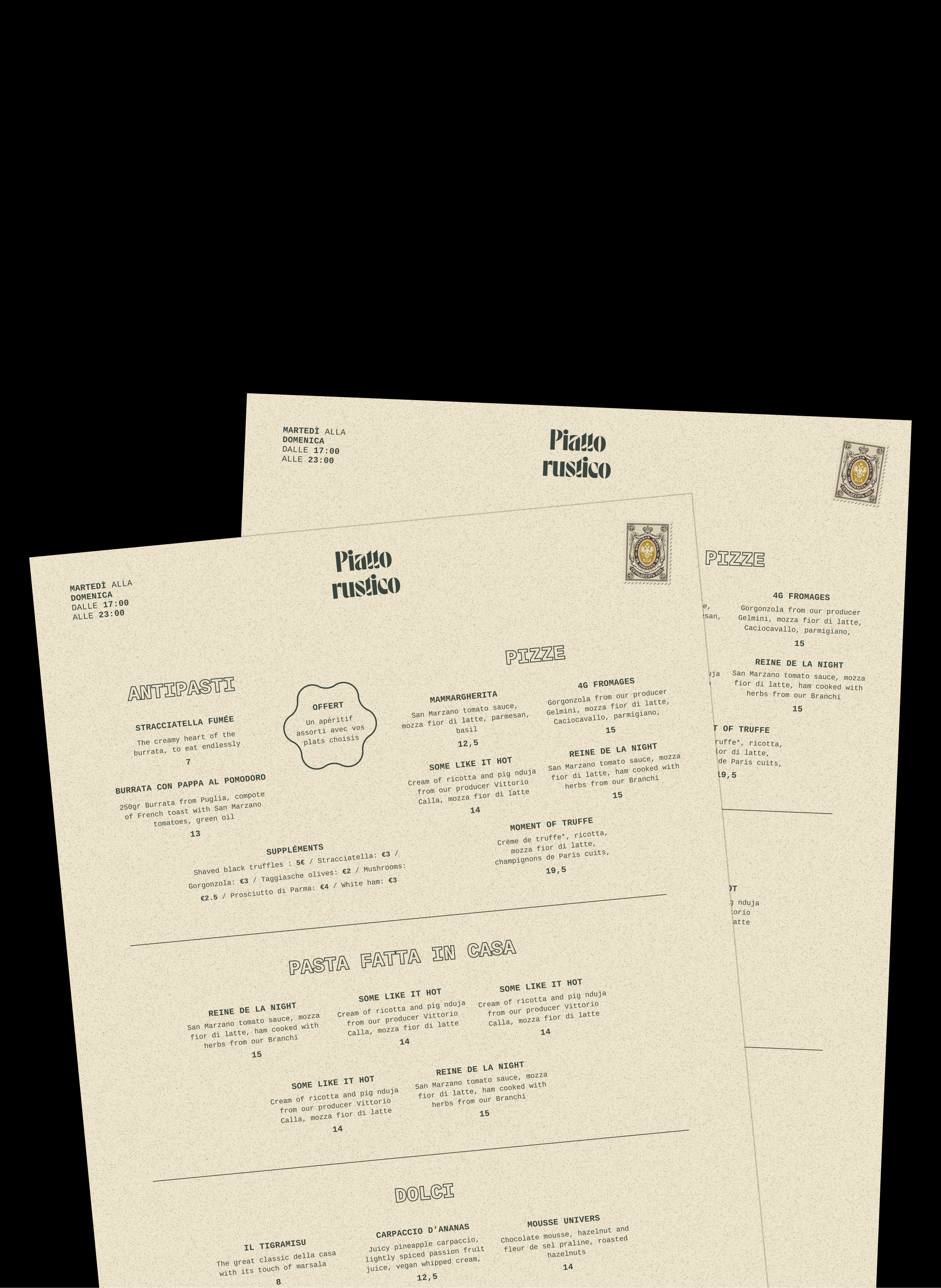 Création de l’identité visuelle de Piatto Rustico, restaurant italien. Un univers graphique authentique pour traduire l’âme de la cuisine italienne.